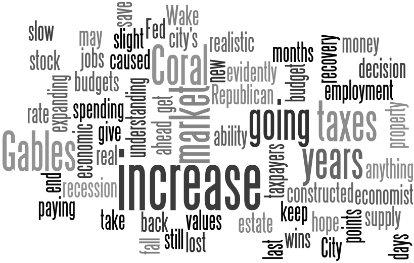 City of Coral Gables’ budgets, taxes and spending should be constructed with the realistic understanding that the real estate market is not going to save the city’s budget and the taxpayers are at the end of their ability to keep paying more and more taxes.